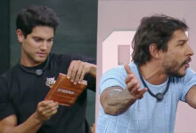 “Esse é o seu jogo, Matheus“, disse Saory. “Que joguinho, animal? Fica com o ombro estourado e com a mão fud*d*. Fica brincando aí. Toma remédio pra c*r*lho e fica mal”, rebateu Matheus. “Eu tomo remédio?“, indagou a dentista. “Eu, eu, eu! Na minha situação”, explicou o modelo.