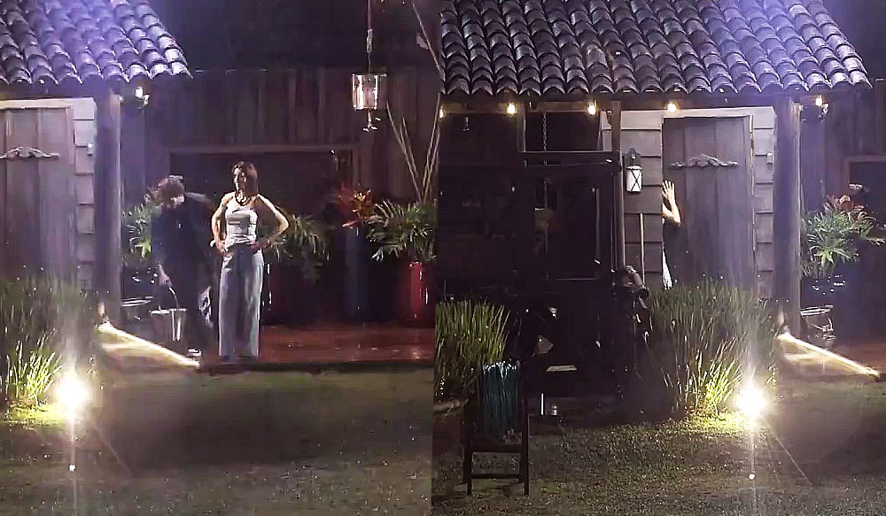 A Record TV exibiu, no programa ao vivo deste domingo (12), o momento em que Michelle Barros e Shia Phoenix desceram para a área dos animais na madrugada do último sábado (11). A cena havia sido detalhada por Dudu Camargo em conversa com Yoná Sousa, mas não tinha sido exibida para o público até agora.