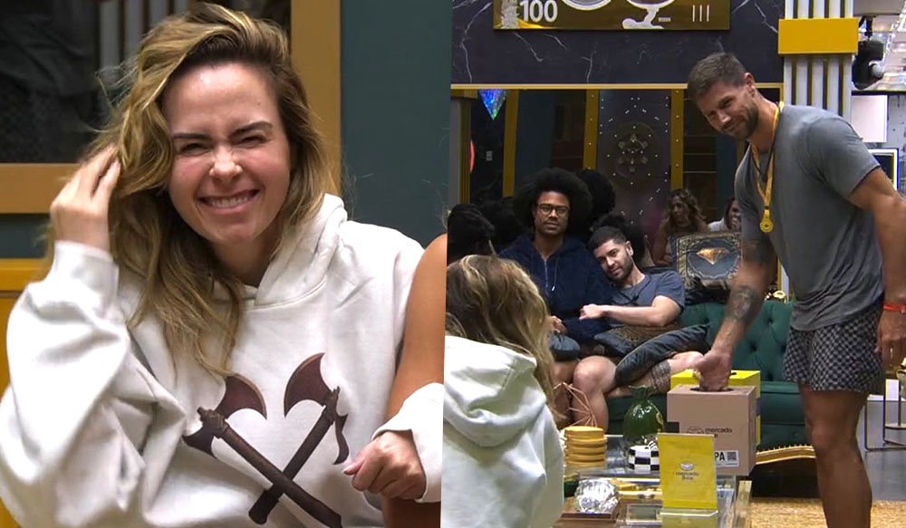 Agora eu quero rua e o quarto do Líder”, disse Ana Paula. “Opa!“, comentou Tadeu. “É carnaval, Tadeu! Jogo é jogo, depois é coisa de adulto”, afirmou a jornalista. “Ai Meu Deus do céu! É carnaval!”, brincou o apresentador, aos risos.