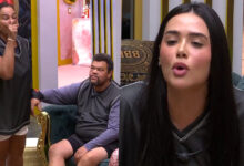 Na sequência, Breno e Jordana iniciaram uma discussão no quarto. “Eu faço o serviço de escutar e você, Breno, faz o de falar”, disparou a sister. “Eu não preciso disso. O que você falou realmente faz sentido. Tem gente que não tem enredo lá, e vocês não têm enredo aqui. Você ficou nervosa por quê? Por que foi exposta nesse joguinho?”, indagou o brother.