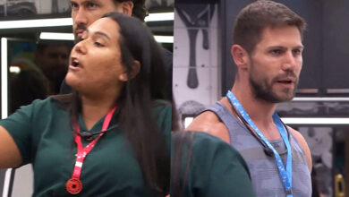 Lucas se defendeu, mas a discussão entre os dois não terminou nada harmoniosa. “Olha as suas atitudes dentro do jogo, cara. Quer jogar na minha cara? Ok, mas olha as atitudes que você teve desde que entrou, armando esse grupão, oprimindo as pessoas. E agora vocês voltaram atrás”, disse o militar. “Voltaram atrás o quê? A gente respeita as pessoas. Quando as pessoas se sentem desrespeitadas, a gente respeita as pessoas. Isso é diferente. A gente continua com as mesmas atitudes e continua o mesmo grupo. Tu é um otário”, rebateu o intérprete de “Pisadinha Abençoada”.
