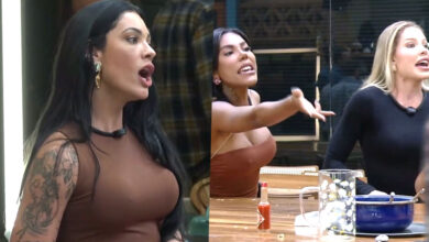 “Quem vive de passado é museu, meu amor. Eu não preciso da tua aprovação pra nada, acorda!”, disse Rayane. “Acorda pra quê Ray? Quem é você? Você é namoradinha de fulano”, rebateu Carol. “Eu não preciso assinar contrato, não, pra ser bancada. Se toca, irmã!”, disparou a empresária. “Só veio pra A Fazenda porque é namoradinha de fulano, porque se não fosse…”, retrucou a modelo.