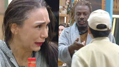 “Você só dorme e toma café. Seu chaveiro da porra! Todo mundo sabe que seu nome é chaveiro! Neto de não sei quem, neto de não sei o que. Eu sou neta de ninguém, isso aqui é na raça e na força“, disse Carol. “Mas é casada com um rico milionário. Você é do job!”, disparou Guilherme. “O quê? Você falou que eu sou do job? Você consegue provar? Eu quero ver você provar, Gui!”, afirmou a modelo.