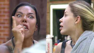 Irritada, Jaquelline não poupou críticas à Kally e responsabilizou a peoa pela desistência de Lucas. “Sua amiga da onça! Sua cobra! Você vai arder nas profundezas do inferno! Você é podre! Cão! Diaba! Some da minha vida, sua mundiça!”, disparou a ex-BBB. “Eu não tenho nada a ver com isso. Não me venha colocar numa posição que não é minha não. Me respeite! Eu só falo verdades aqui dentro!”, rebateu a cantora.