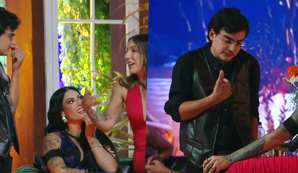 “E a Suyane? Hiperfoco em loiras de ‘S’ com ‘Y’ no nome”, brincou Martina. “Olha só! É amiga do Nizam!”, contou Dudu. “Ai, ai…”, suspirou Rayane. “Ô Dudu, mas ela é ex ou é amiga?”, indagou a peoa expulsa. “O selinho da Suyane é uma coisa de programa de televisão. Todo mundo pensa, mas é só uma colega de televisão”, garantiu o jornalista.