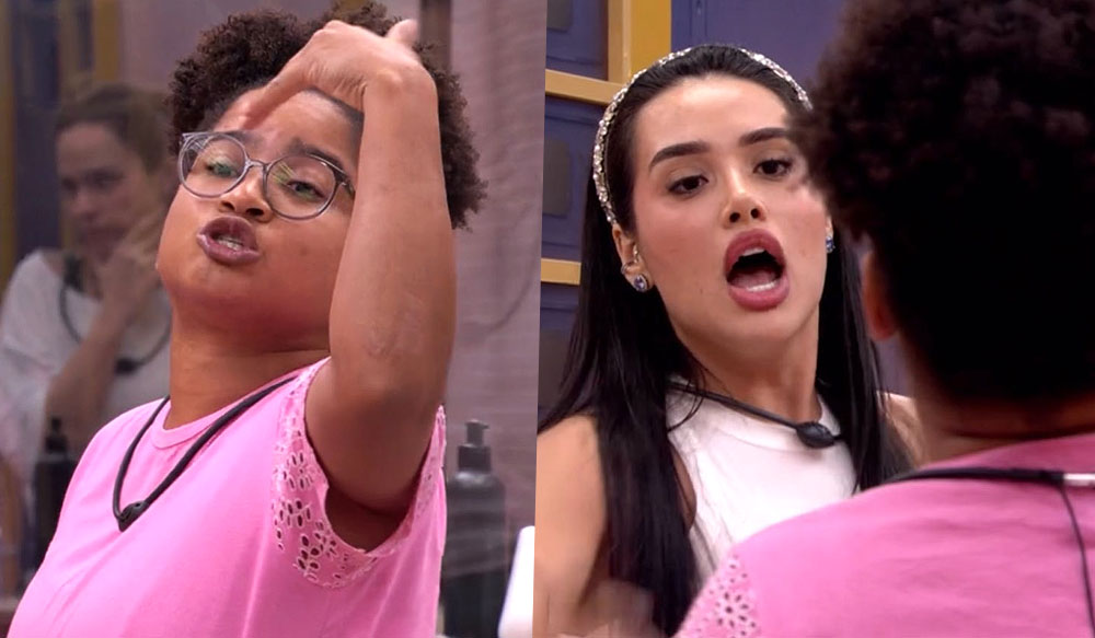 A discussão continuou. “Você poderia muito bem ter chegado e falado na minha cara, aí você tá falando por trás? Por que você não chega e fala?”, indagou a recreadora infantil. “Eu falo quando eu quiser. Eu não preciso da sua liberdade. Fale sozinha aí!”, disparou a advogada. “Da próxima vez, você chega e fala na minha cara. Não fica falando por trás. Eu fico com seu nome na boca? Não fico. Eu nem lembro da sua existência nessa casa”, afirmou a mineira.