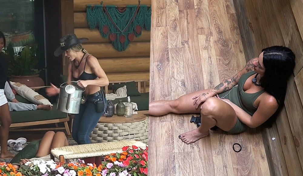 Na sequência, Saory pegou um regador que estava ao seu lado e começou a bater no chão, bem próximo aonde Rayane dormia. Imediatamente, a empresário se virou e tentou colocar a mão embaixo do objeto, possivelmente para que a fazendeira a acertasse e fosse expulsa do programa.