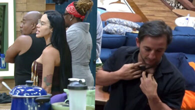“Continua o seu romance lá fora, porque você é doidinha por ele”, disparou Saory. “Confirma pra mim: eu beijei o Will? Onde que foi mesmo? Só pra eu pedir à produção a gravação de lá. Você não consegue sustentar, né? Você não consegue sustentar a personagem”, rebateu Rayane.