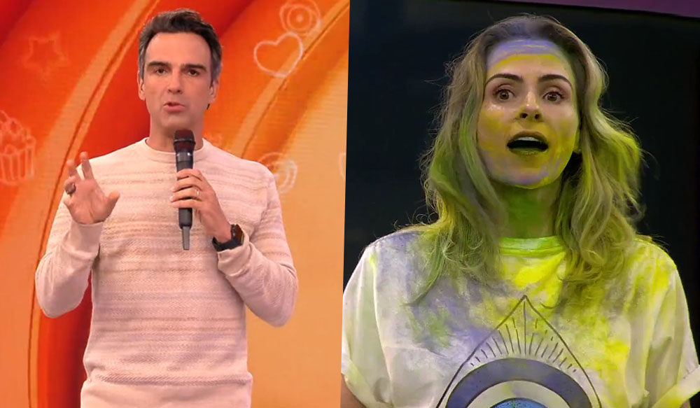 Logo em seguida, Ana Paula pediu para tapar a boca com a mão, pois o jato de tinta da dinâmica era muito forte e a estava machucando. Impaciente, o apresentador respondeu: “Fecha a boca direitinho, que todo mundo vai fechar a boca direitinho. Mantenha a boca fechada“.